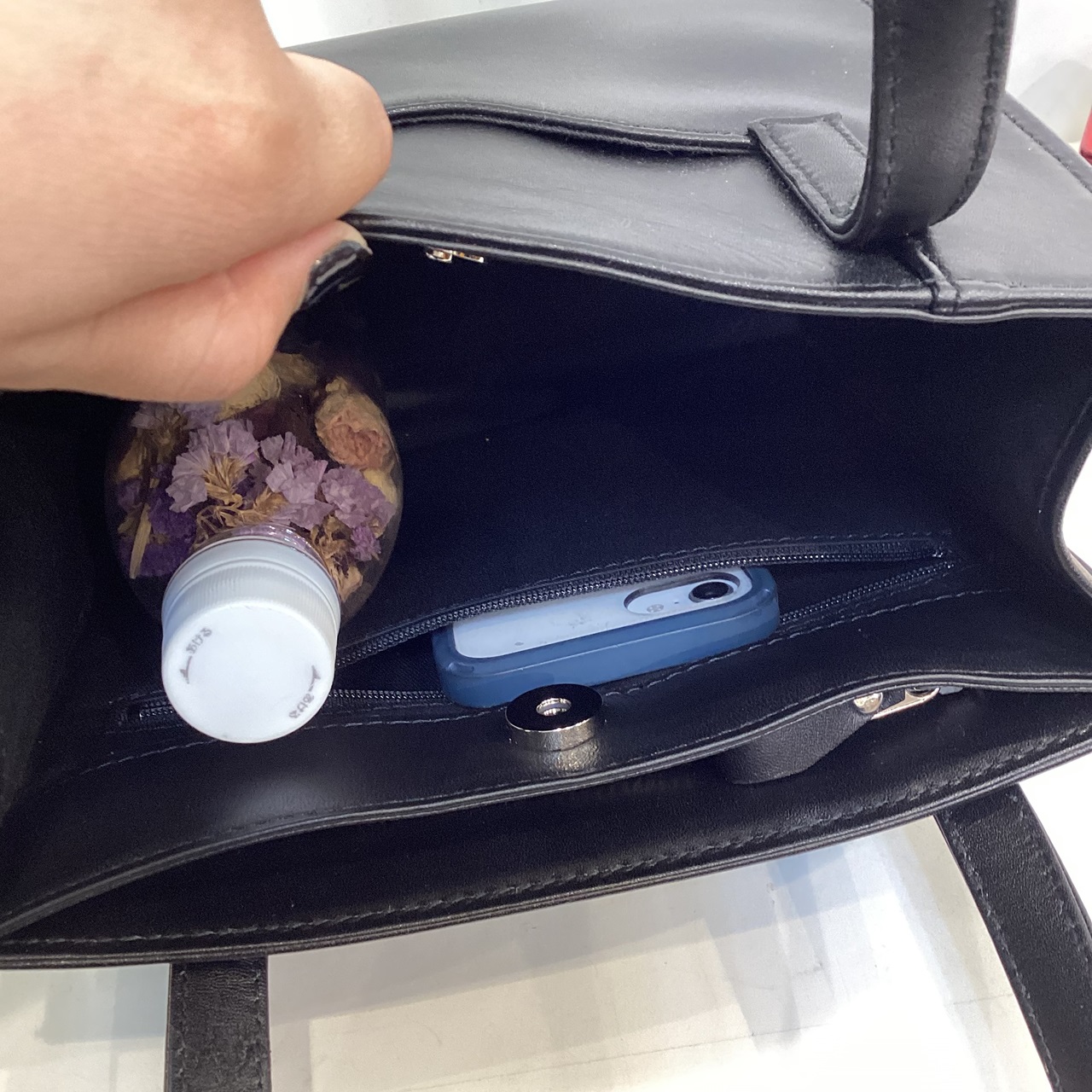 ・本体はファスナーとマグネットの二つの入り口で仕切った造りで、荷物を分けて収納できます。
